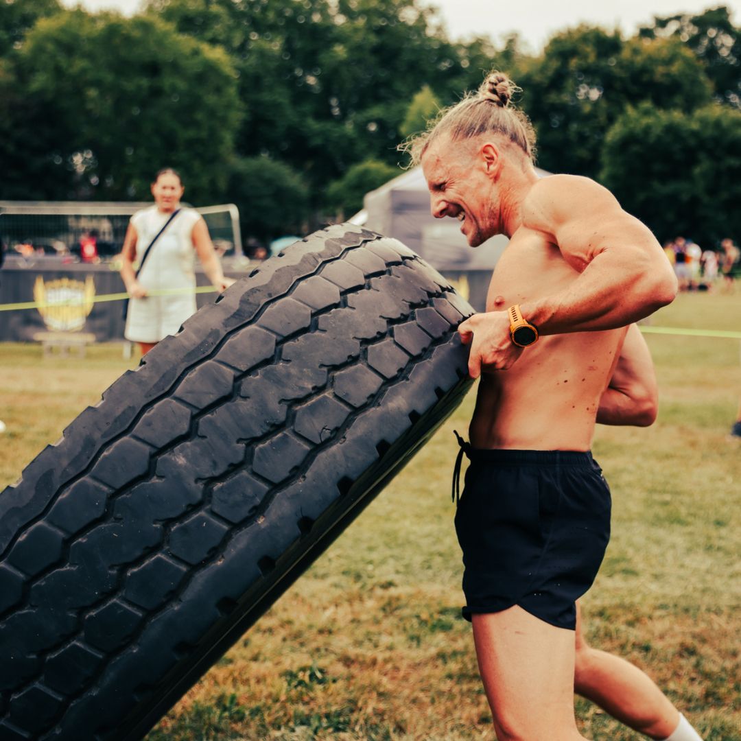 This workout typically involves heavy lifting but Superhuman-style! You can expect movements like tyre flips, tyre pulls, drags and heavy sandbag work.